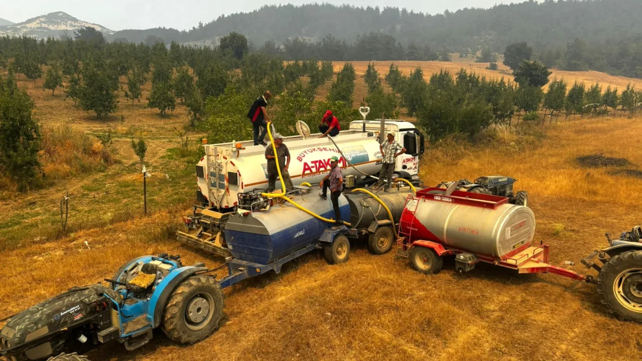 Yangının yerleşim alanlarına ulaşmasını engellemek için gece gündüz çalışan ekipler, zaman zaman 40 derecenin üzerindeki sıcaklıkta ve sarp arazilerde görev yapıyor. A Takımı ekipleri, deneyimli personeli ile arazözler ve iş makineleriyle hem ormanlık alanlara hem de tarım arazileri ve yerleşim yerlerine yakın bölgelere su taşıyarak, yangın söndürme çalışmalarının bir parçası oluyor.