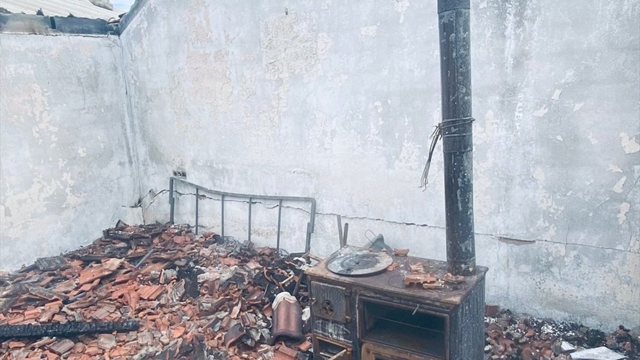 Kullanılmaz hale gelen evdeki yangının çıkış nedeninin belirlenmesi için çalışma başlatıldı.