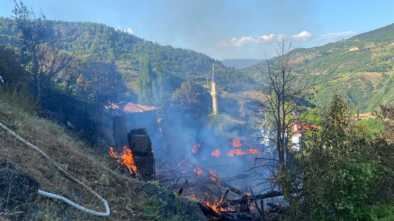 Oluklu köyünde Mehmet T'ye ait ahşap evde bilinmeyen nedenle yangın çıktı.