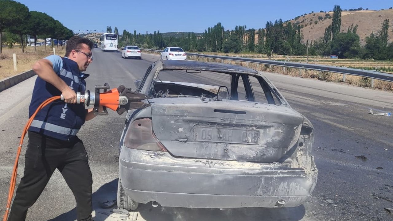 Kaza nedeniyle 09 AH 005 plakalı otomobilde çıkan yangın, Sungurlu Belediyesi itfaiye ekiplerince söndürüldü.