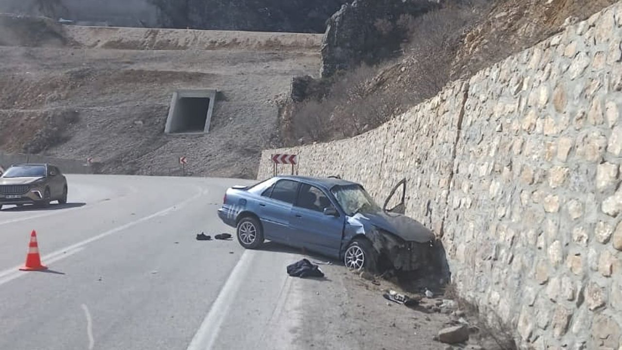 G.K. idaresindeki otomobil, Çorum-Osmancık kara yolu Kırkdilim mevkisinde istinat duvarına çarptı.