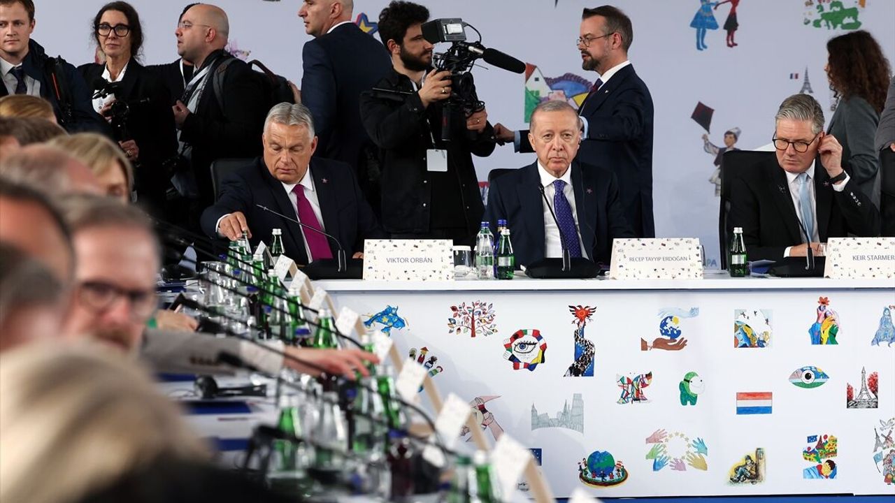 Zirvenin açılış programında Erdoğan, Fransa Cumhurbaşkanı Emmanuel Macron ve İngiltere Başbakanı Keir Starmer ile yan yana oturdu.