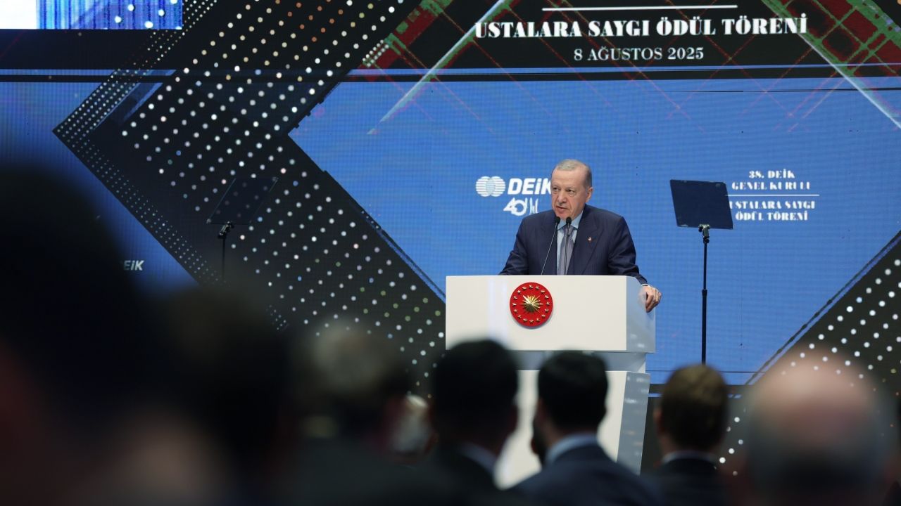 Dış Ekonomik İlişkiler Kurulu (DEİK) 38. Olağan Mali Genel Kurulu ve Ustalara Saygı Ödül Töreni Programı'nda konuşan Erdoğan, katılımcılarla birlikte olmaktan, 40'ıncı yıl heyecanını paylaşmaktan büyük memnuniyet duyduğunu belirterek, genel kurulun ülke, millet ve ülke ekonomisi için hayırlara vesile olmasını diledi.
