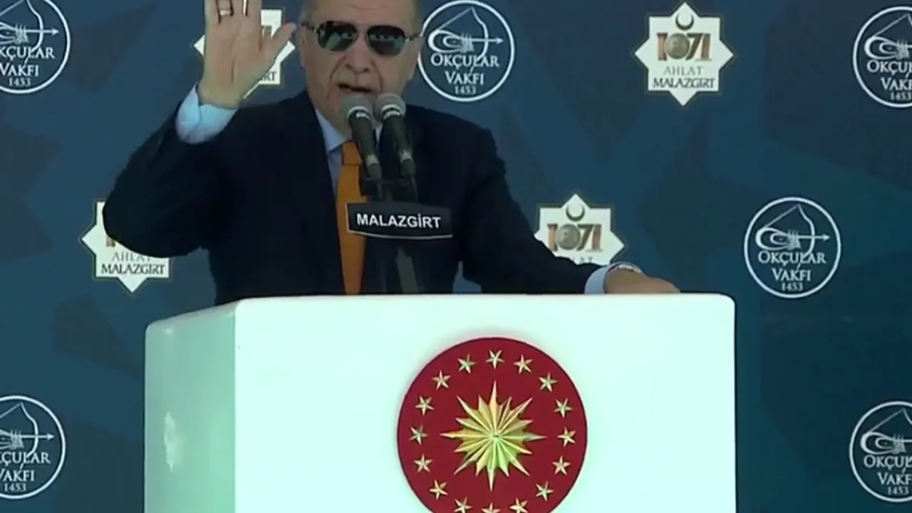 Cumhurbaşkanı Recep Tayyip Erdoğan, Malazgirt Milli Park Alanı'nda, Malazgirt Zaferi'nin 954. yıl dönümü kutlama programı kapsamında yaptığı konuşmada Türkiye'nin bölgede barış ve esenliğin teminatı olduğunu belirterek, "Yönünü Ankara'ya dönen kazanır" dedi.MUŞ (İGFA) - Malazgirt Zaferi’nin 954. Yıl Dönümü kutlama törenlerine katılan Cumhurbaşkanı Recep Tayyip Erdoğan, halka hitap ederek, önemli mesajlar verdi.