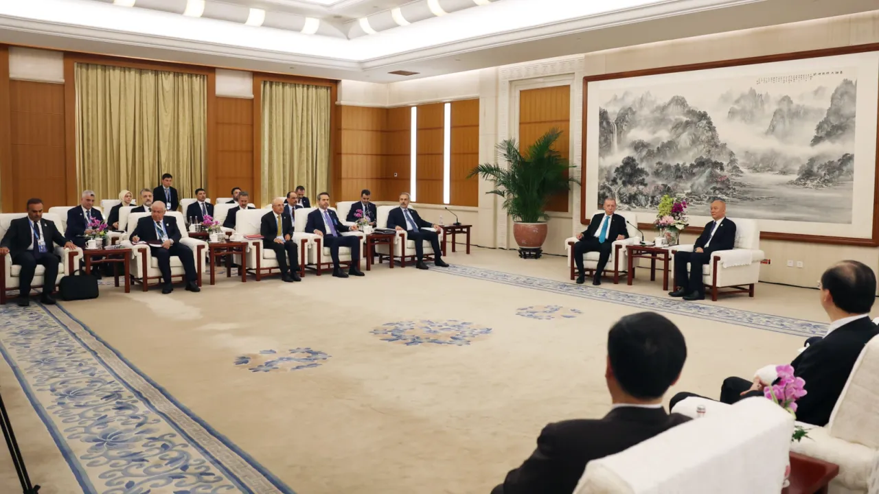İletişim Başkanlığı'ndan habere göre, Cumhurbaşkanı Erdoğan, görüşmede yaptığı konuşmada, geniş bir heyetle Tiencin'de olduklarını söyledi.