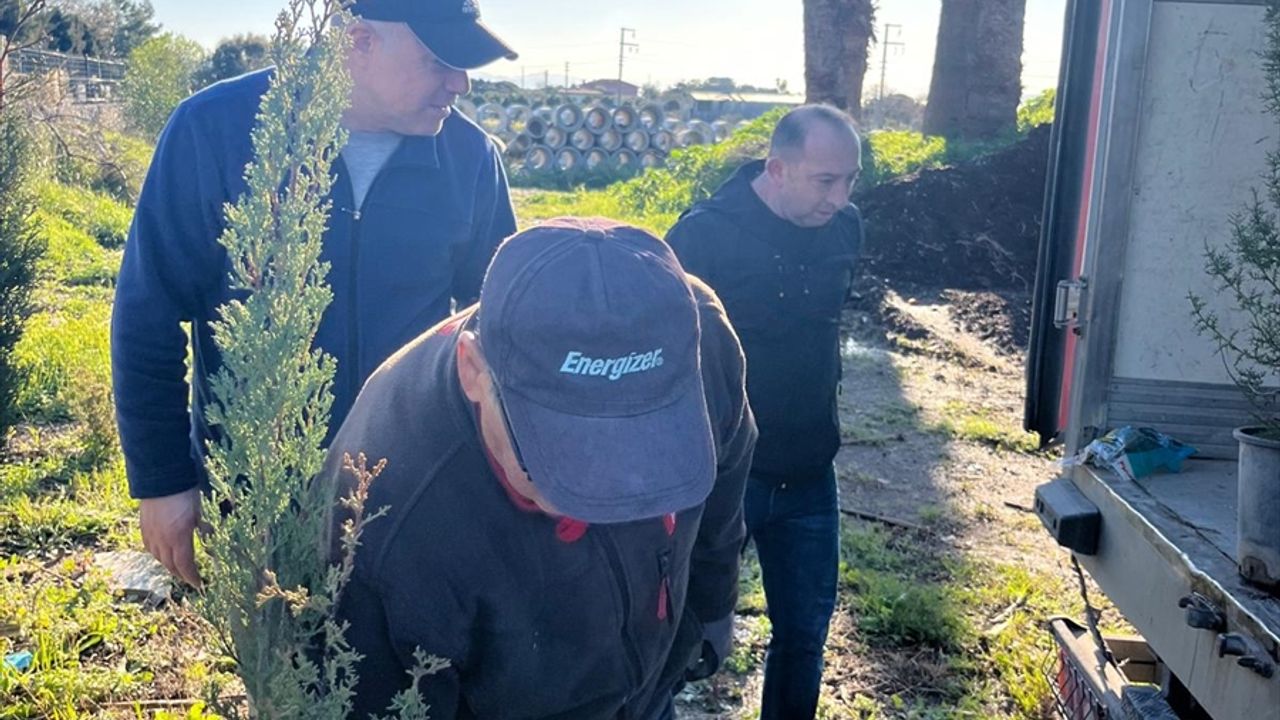 Kızlan Mahallesi'ndeki bahçesinde binlerce fidan yetiştiren Avsever'in bağışladığı fidanlar, kamyona yüklendi.