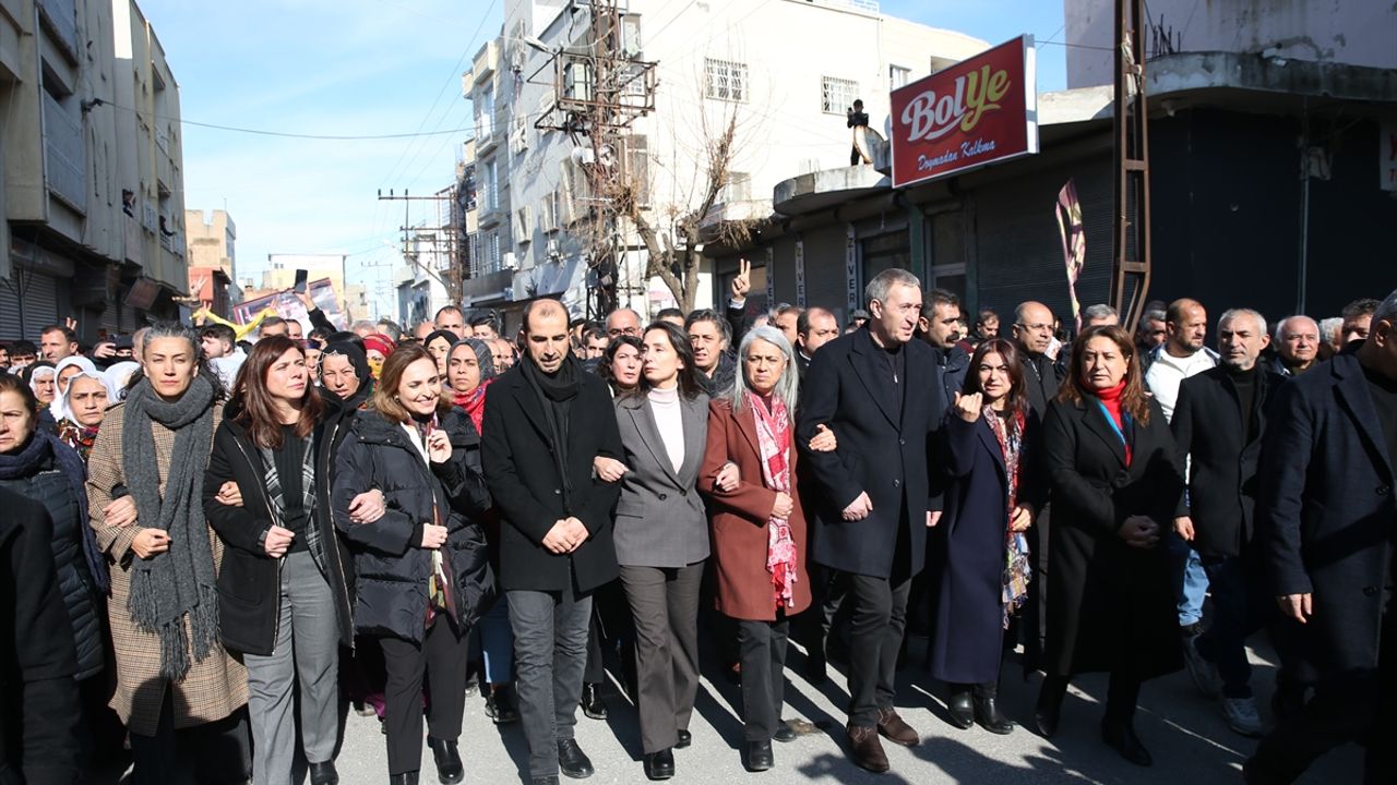 MARDİN (AA) - DEM Parti Eş Genel Başkanları Tülay Hatimoğulları ve Tuncer Bakırhan, Mardin'in Nusaybin ilçesinde düzenlenen yürüyüşe katıldı.