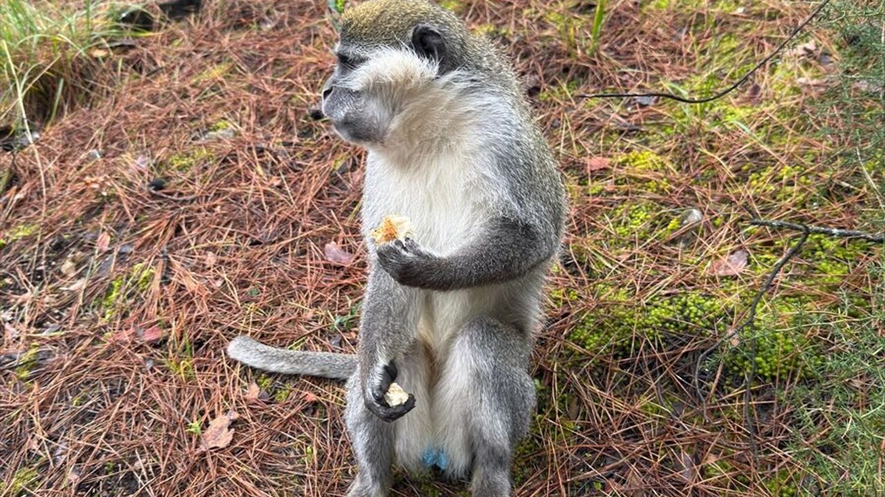 Kınıklı Mahallesi'ndeki Çamlık mesire alanına kuzugöbeği mantarı toplamaya giden Nizamettin Yiğit, ormanlık alanda başıboş dolaşan bir maymun gördü.