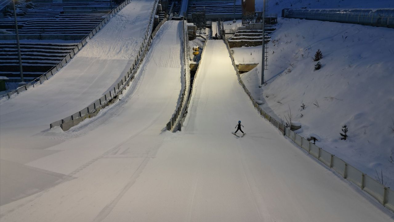 Hava sıcaklığının zaman zaman sıfırın altında 20 dereceye kadar düştüğü antrenmanlara aileleriyle gelen çocuklar, akşam saatlerinde dondurucu soğukta tecrübeli eğitmenler eşliğinde söz konusu rampadan başarılı bir şekilde inip geleceğin kayakla atlamacısı olmak için çabalıyor.