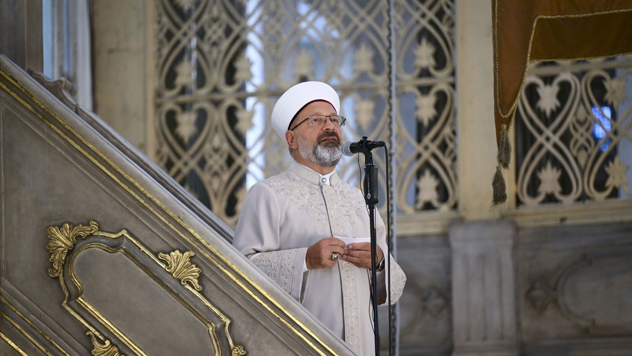 İSTANBUL (AA) - Diyanet İşleri Başkanı Prof. Dr. Ali Erbaş, Eyüpsultan Camisi'ndeki hutbesinde, ağustos ayının Malazgirt Zaferi ve Büyük Taarruz gibi dönüm noktalarını barındırdığını belirterek, şehitlere rahmet, gazilere şifa diledi, Gazze'de soykırıma maruz kalanlar için de dua etti.