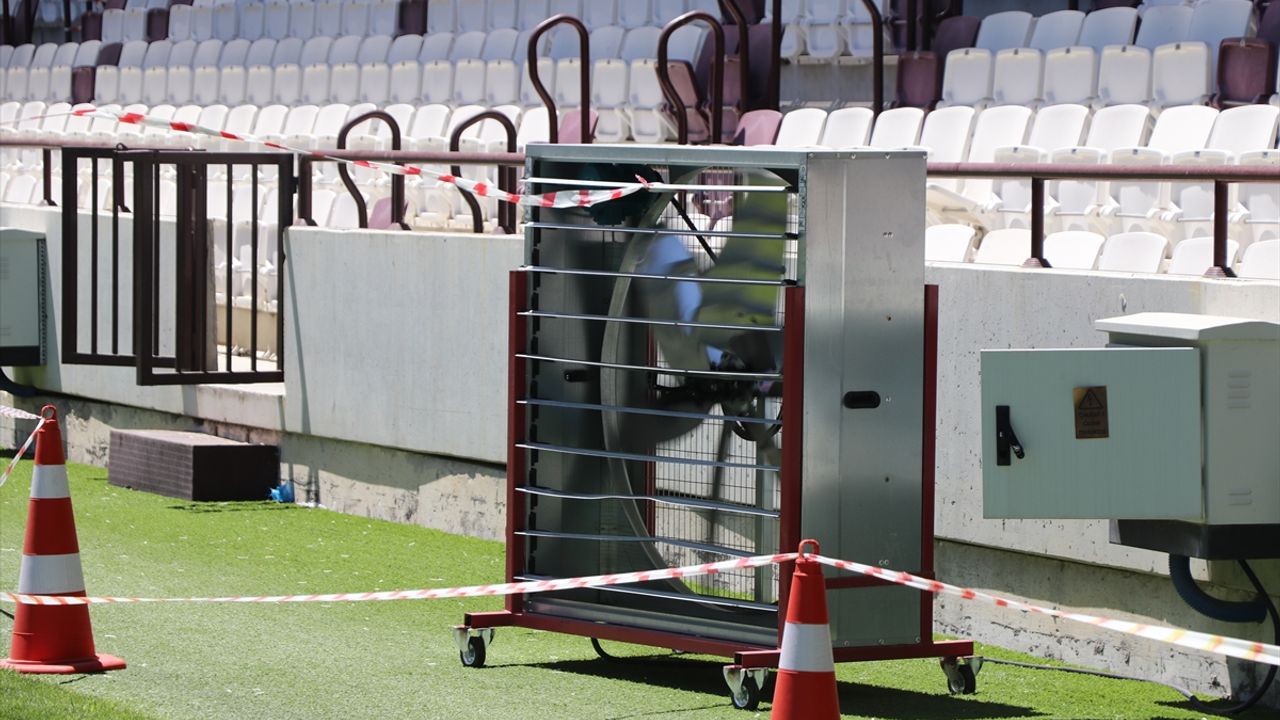 Sıcaklığın olumsuz etkilerine karşı alınan tedbirler kapsamında Diyarbakır ve Elazığ'daki statlarda çimlerin korunması için perdeleme sistemi uygulanıyor, farklı alanlara kurulan fanlarla hava sirkülasyonu sağlanıyor.