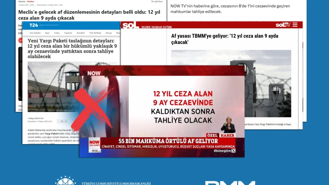 İletişim Başkanlığı Dezenformasyonla Mücadele Merkezi, bazı basın organlarında yer alan “Yeni yargı paketiyle 12 yıl ceza alan biri 9 ay hapis yatıp çıkacak” iddiasını yalanladı. 10. Yargı Paketi’nin, 2 yıl altındaki cezalarda “cezasızlık algısını” ortadan kaldırmak için en az 8’de 1 oranında hapis zorunluluğu getireceği belirtildi.ANKARA (İGFA) - Dezenformasyonla Mücadele Merkezi, bazı basın yayın organlarında yer alan “Yeni yargı paketiyle 12 yıl ceza alan biri 9 ay hapis yatıp çıkacak” iddiasının gerçeği yansıtmadığını duyurdu. Merkez, kamuoyunu manipüle etmeye yönelik bu asılsız iddialara itibar edilmemesi gerektiğini vurguladı.