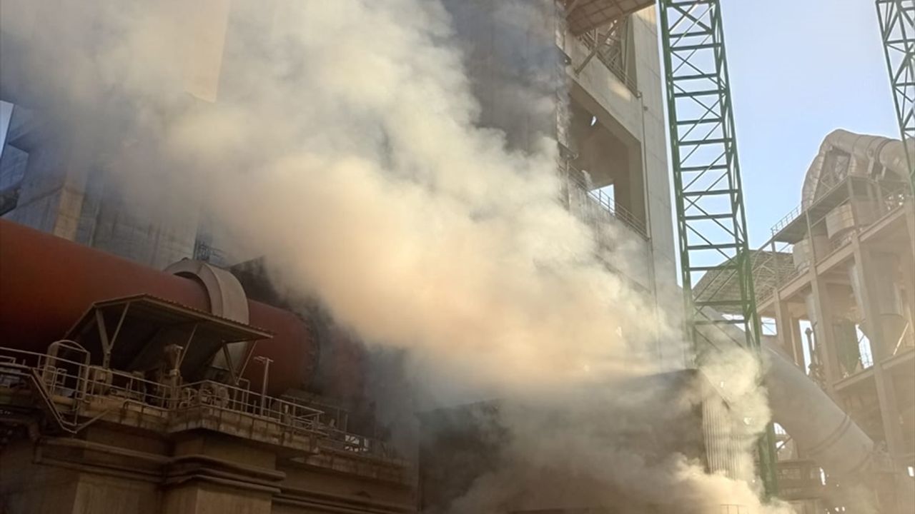 Aksu Mahallesi'ndeki bir çimento fabrikasının taşıma bandında henüz belirlenemeyen nedenle yangın çıktı.