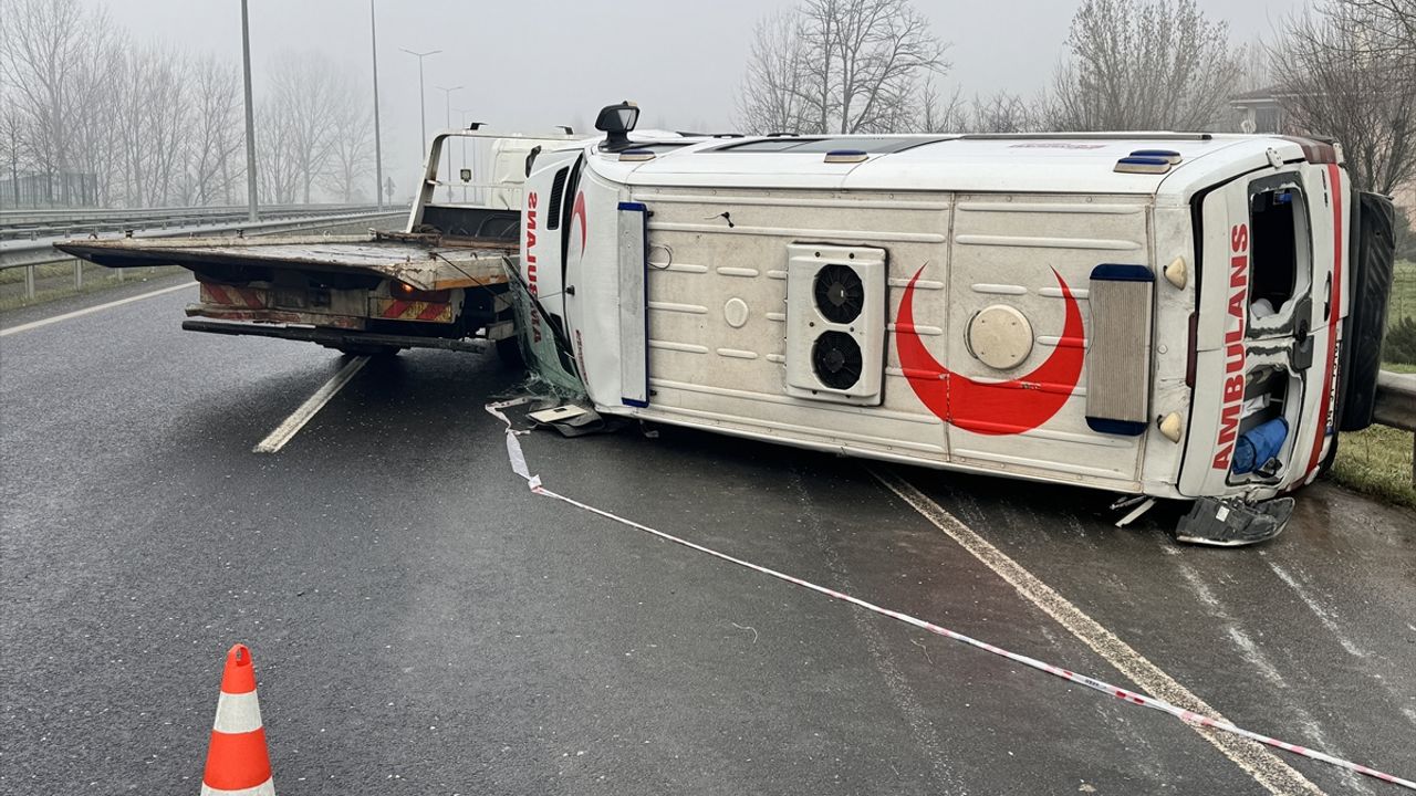DÜZCE (AA) - Düzce'de ambulansın devrilmesi sonucu 2 kişi yaralandı.