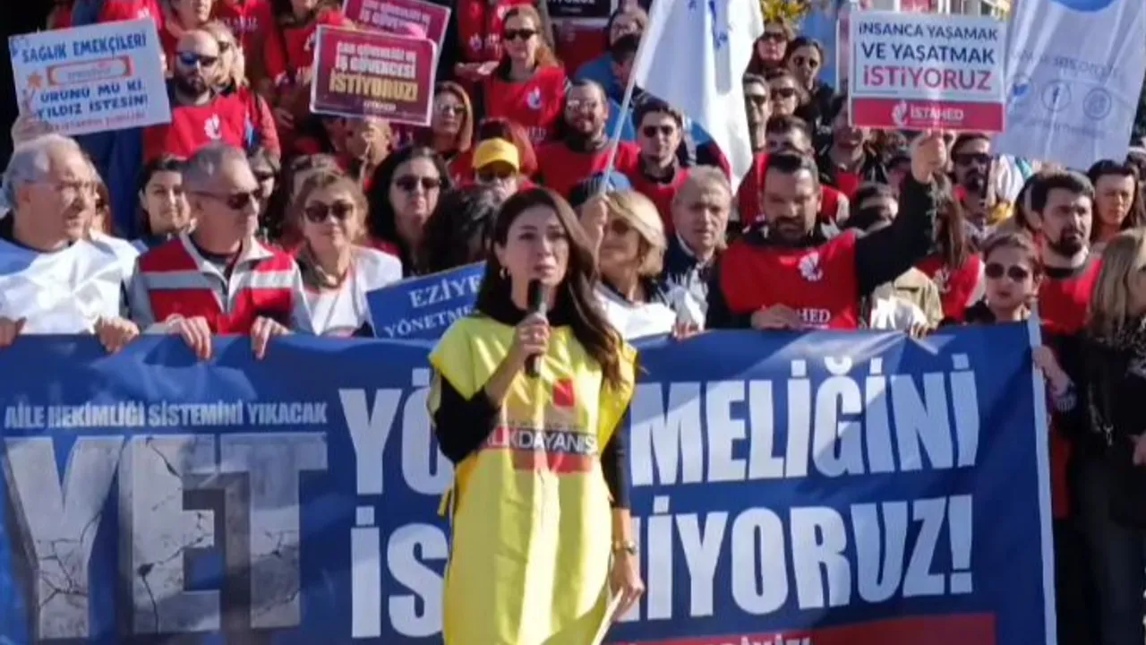 “Annelere 6 ay sadece anne sütü eğitimi veren ebelerimiz gebe kaldıkları zaman doğum izni hakkı verilmiyor, maaşlarından kesintiler yapılıyor, bebeği 3 aylıkken çalışmaya mahkum ediliyor. Normal doğum pankartları asılıyor fakat ebeler yok sayılıyor. Sağlık, pankartla performans sistemiyle yönetilmez. Ebelerimiz yasal hakkı olan yıllık izinlerinde maaş kesintisine uğruyor. Ebelerimiz daha iyi fiziki şartlarda ,yoksulluk sınırı üzerinde maaş,performansın ve evrakların içinde kaybolmadan mesleklerini özveriyle icra etmek istiyorlar…”