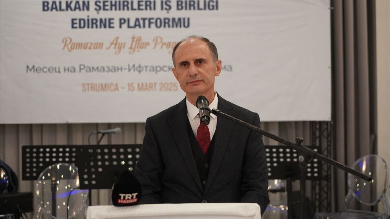 USTRUMCA - Edirne Valiliğinin öncülüğünde oluşturulan Balkan Şehirleri İş Birliği Edirne Platformu tarafından Türkiye'nin Üsküp Büyükelçiliğinin destekleriyle Kuzey Makedonya'nın Güneydoğusundaki Ustrumca kentinde iftar programı düzenlendi.