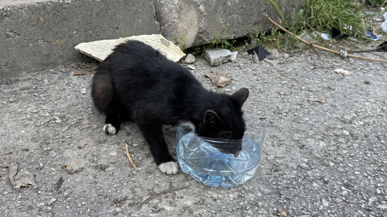 Bu sırada mahalle sakinleri de itfaiye ekiplerine teşekkür ederek, kediye su ve mama verdi.
