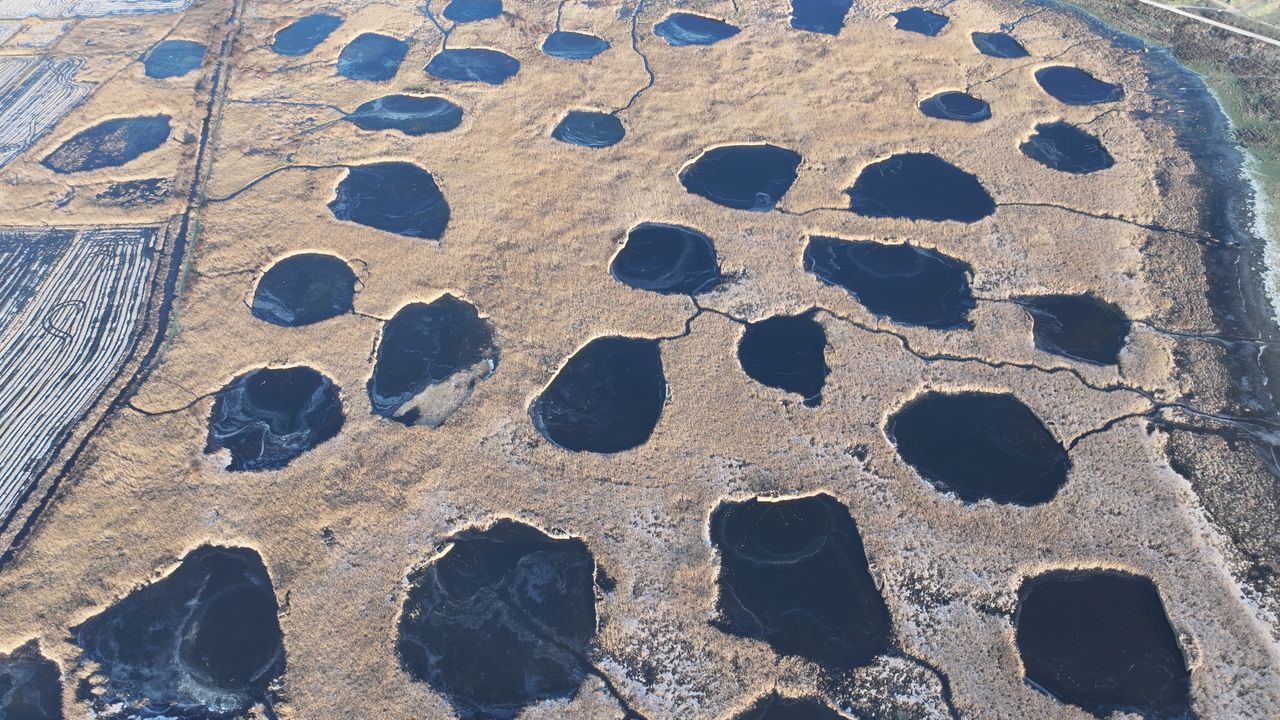 EDİRNE (AA) - Edirne'de Göl Baba sulak alanının büyük bölümü, dondurucu soğukların etkisiyle buzla kaplandı.