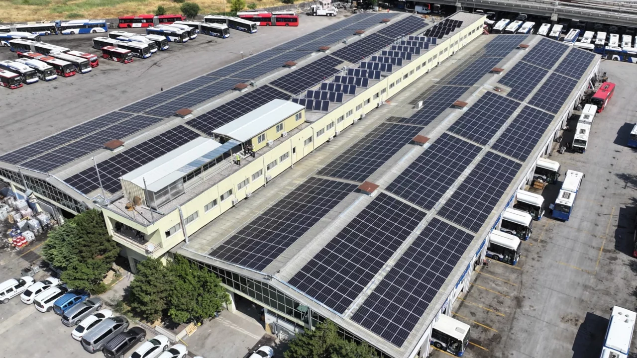 Ankara Büyükşehir Belediyesi EGO Genel Müdürlüğü, çevreci projelerine bir yenisini daha ekledi. Macunköy Otobüs Bakım-Onarım Atölyeleri çatısına Güneş Enerjisi Santrali (GES) kuruldu.ANKARA (İGFA) - Ankara Büyükşehir Belediyesi (ABB), çevreci ve sürdürülebilir projeleriyle yerel yönetimlere öncülük etmeye devam ediyor. EGO Genel Müdürlüğü tarafından Macunköy 2. Bölge Müdürlüğü’nde bulunan Merkez Otobüs Bakım-Onarım Atölyeleri çatısına Güneş Enerjisi Santrali (GES) kuruldu. Yaklaşık 10 bin metrekare çatı alanına kurulan ve 1242 kWp kurulu güce sahip santral, TEDAŞ’ın onayının ardından elektrik enerjisi üretmeye başlayacak.