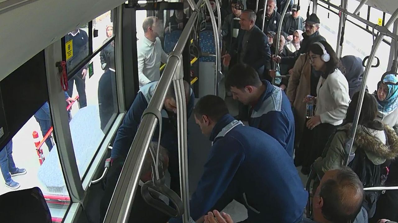Yolcunun otobüsle hastaneye götürülmesi, aracın güvenlik kamerasınca kaydedildi.