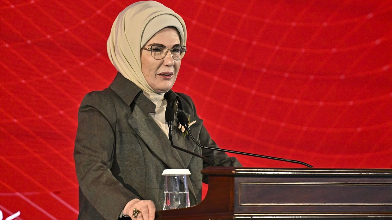 Emine Erdoğan, artan küresel krizlerle birlikte, dünya çocuk karnesinin ne yazık ki her geçen gün daha fazla kırık notla dolduğunu anlatarak, 'Bugün, 473 milyondan fazla çocuk, yani her 6 çocuktan 1'i, çatışmalardan etkilenen bölgelerde yaşıyor. Göçe zorlanmış 50 milyondan fazla çocuk var. 2018-2024 yılları arasında 2 milyondan fazla çocuk hayata gözlerini mülteci olarak açtı. Bir vatana, bayrağa, toprağa ait olmak ne demek, hiç bilmediler.' ifadelerini kullandı.