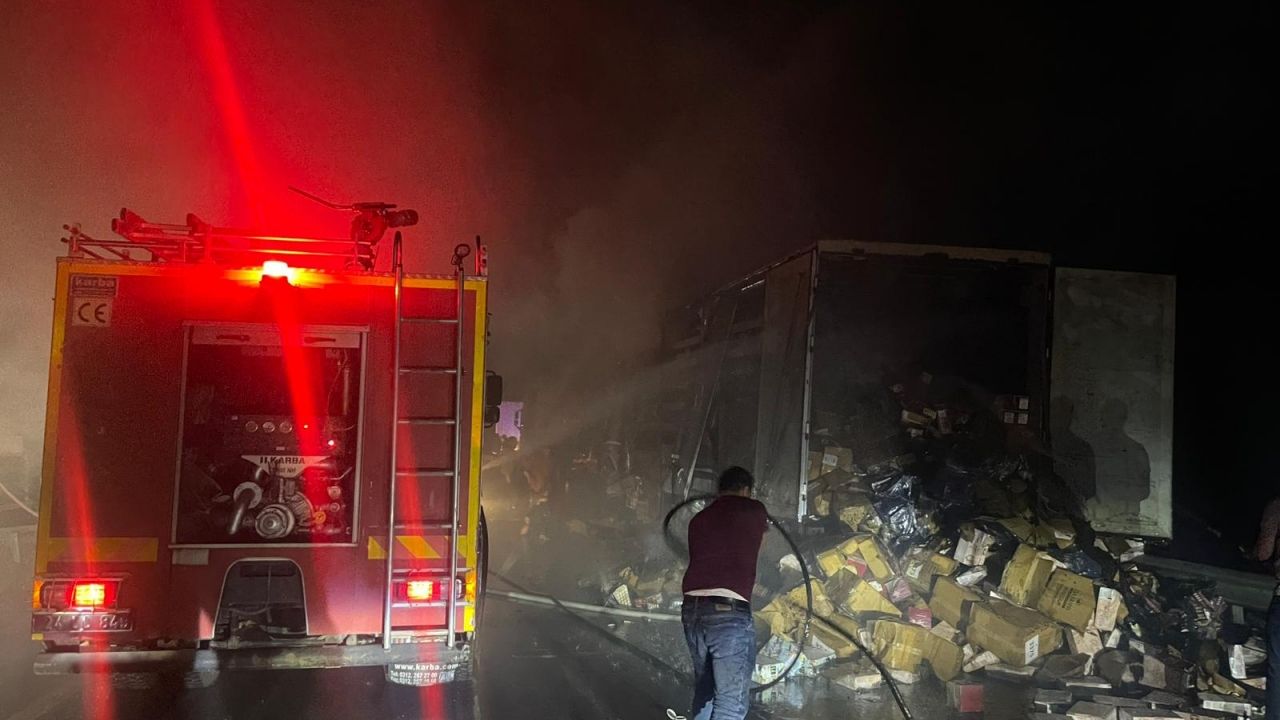İtfaiye ekipleri ise yaklaşık bir saat süren müdahalenin ardından tırdaki yangını söndürdü.