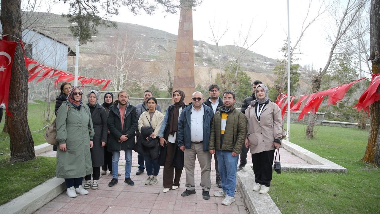Erzurum Turizm Tanıtım ve Kalkınma Derneği Başkanı Ömer Faruk Kızılkaya ile ETÜ Tarih Kulübü öğrencileri, Yakutiye ilçesindeki Yanıkdere Şehitliği'nde basın toplantısı düzenledi.