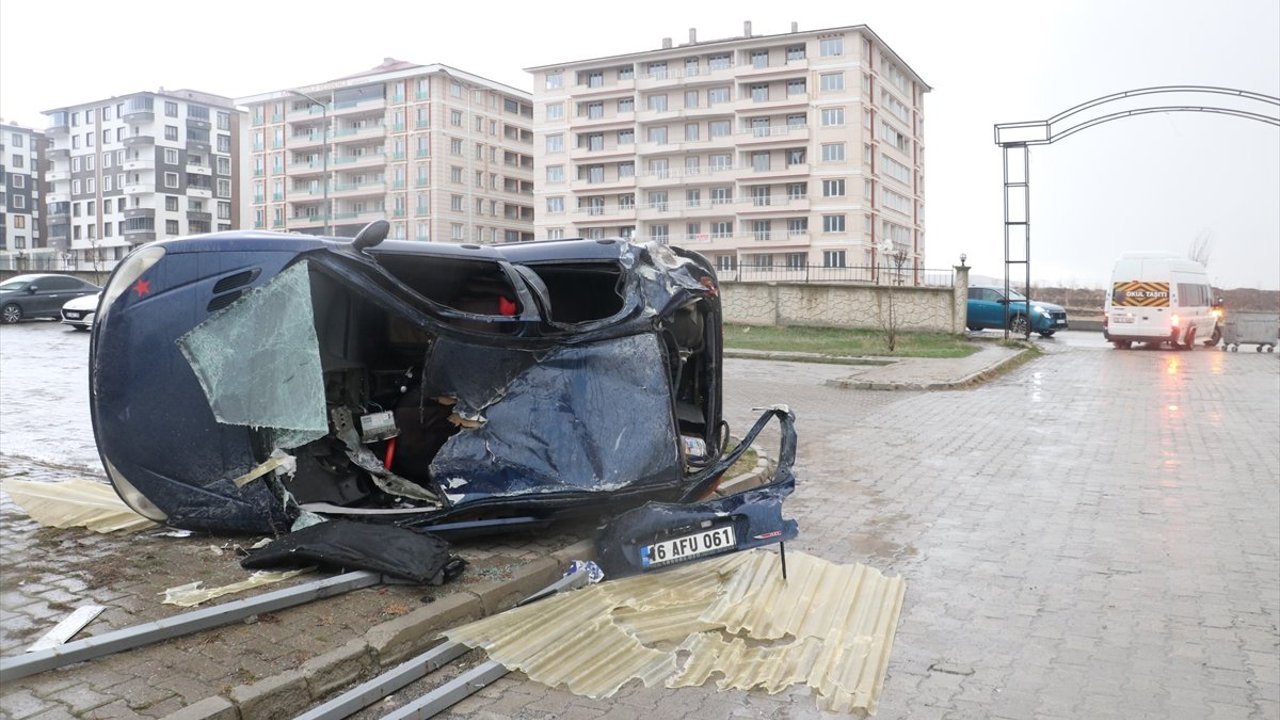 Yıldızkent semtinde binanın çatısından uçan sac ve direkler, yaklaşık 100 metre ileride Çat Yolu TOKİ'ler içerisinde park halindeki aracın üzerine düştü. Şiddetli rüzgarın da etkisiyle yan yatan araçta hasar oluştu.