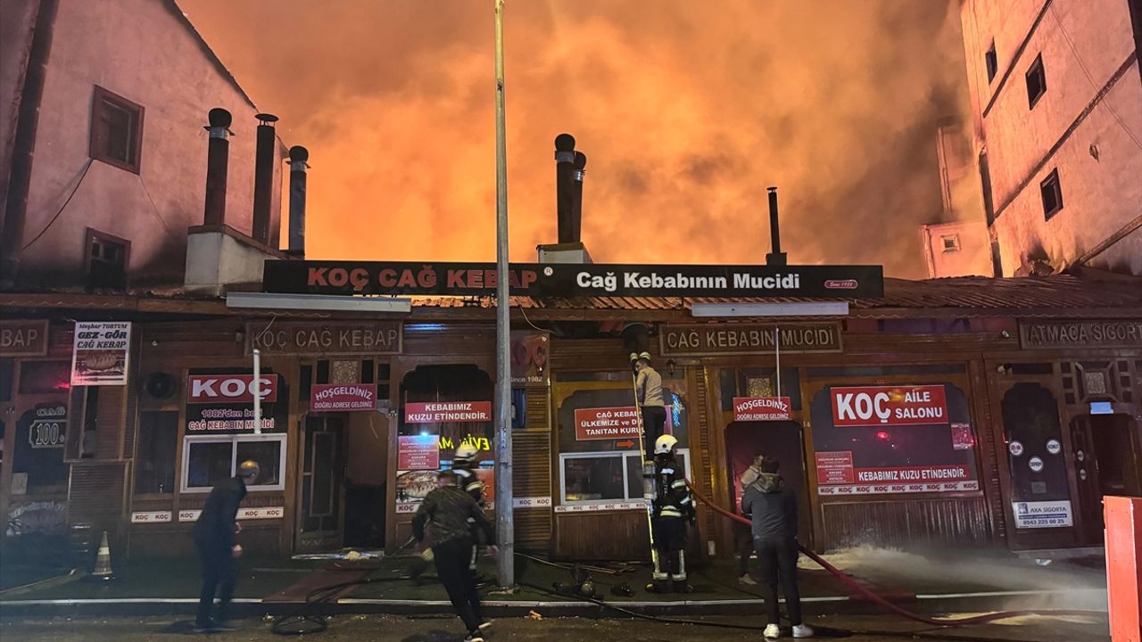 Yakutiye ilçesindeki cağ kebabı restoranında gece saatlerinde çıkan yangın kısa sürede büyüdü.