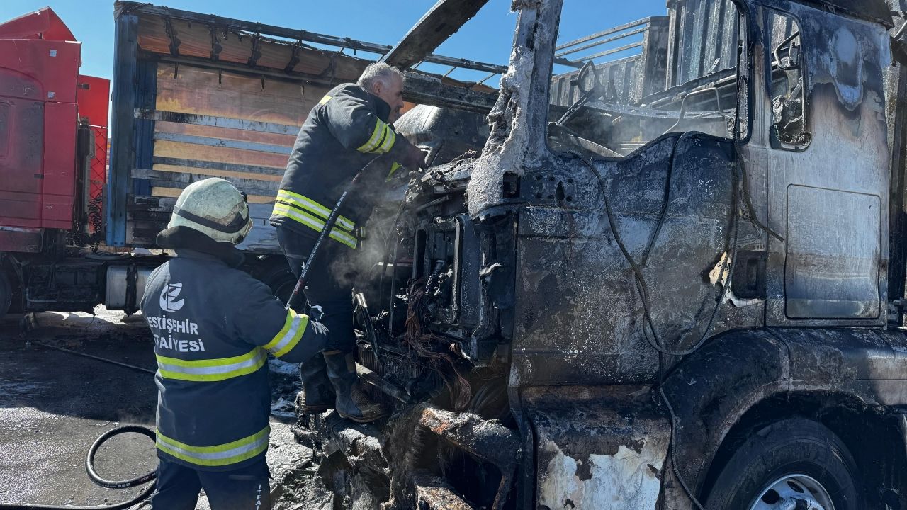 ESKİŞEHİR (AA) - Eskişehir'de park halindeki bir tırda başlayıp, yanındaki 2 araca daha sıçrayan yangın, itfaiye ekiplerinin müdahalesiyle söndürüldü.