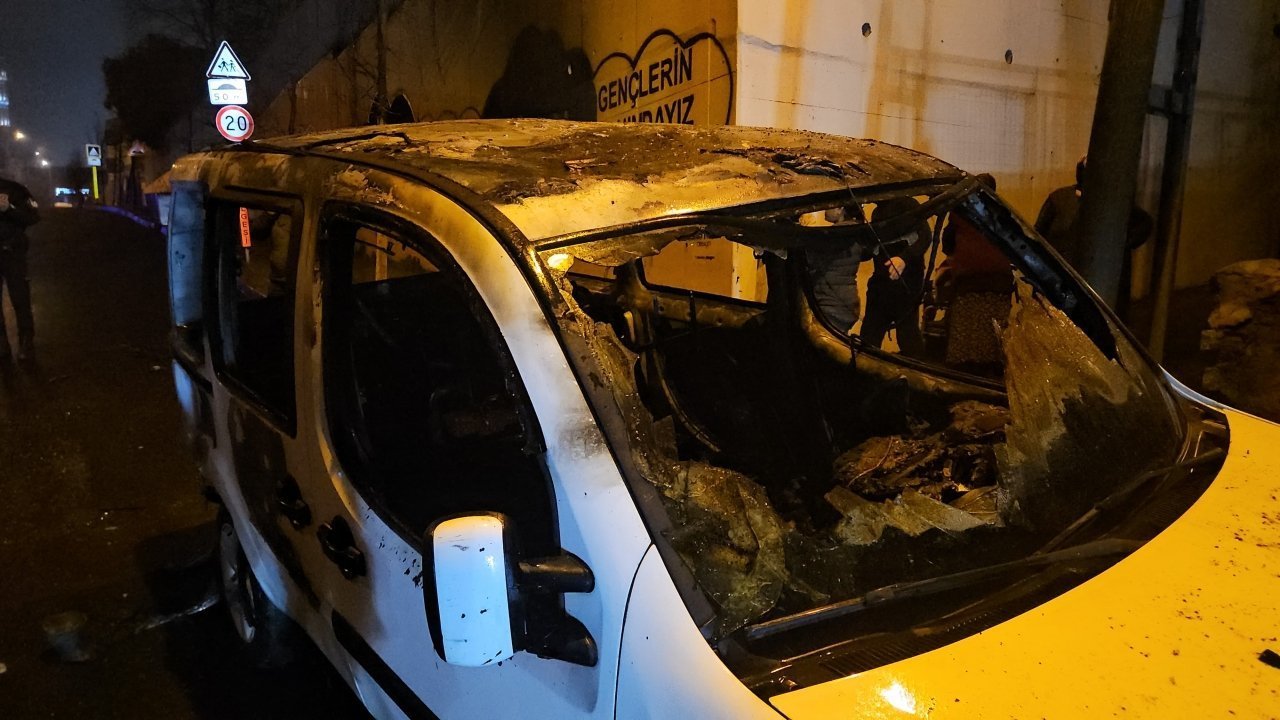 Akşemsettin Mahallesi Cengiz Topel Caddesi üzerinde park halindeki 34 CPE 950 plakalı hafif ticari araç, henüz bilinmeyen bir nedenle yanmaya başladı.