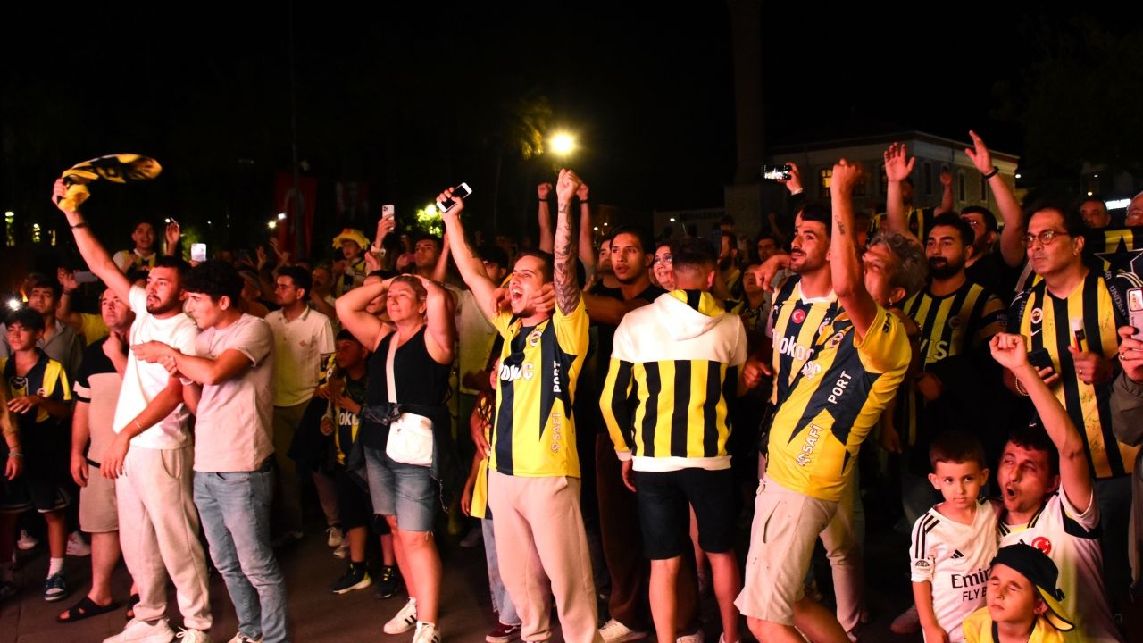 Fethiye Fenerbahçeliler Derneği ile belediye iş birliğinde ilçedeki Beşkaza Meydanı'nda kurulan ekrandan maçı takip eden taraftarlar, bitiş düdüğüyle büyük sevinç yaşadı.