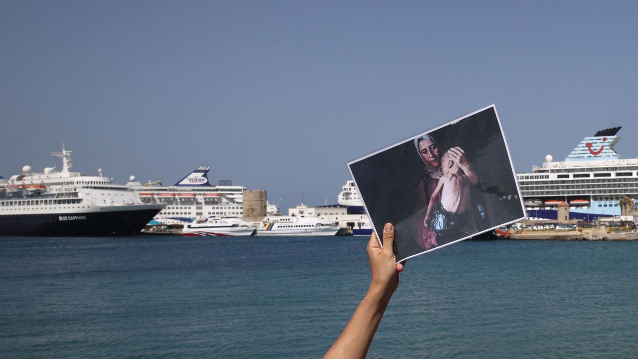 RODOS (AA) - İsrailli turistleri taşıyan kruvaziyer gemisi, Rodos Adası'nda Filistin'e destek vermek isteyen eylemcilerin protestosu ile karşılaştı.