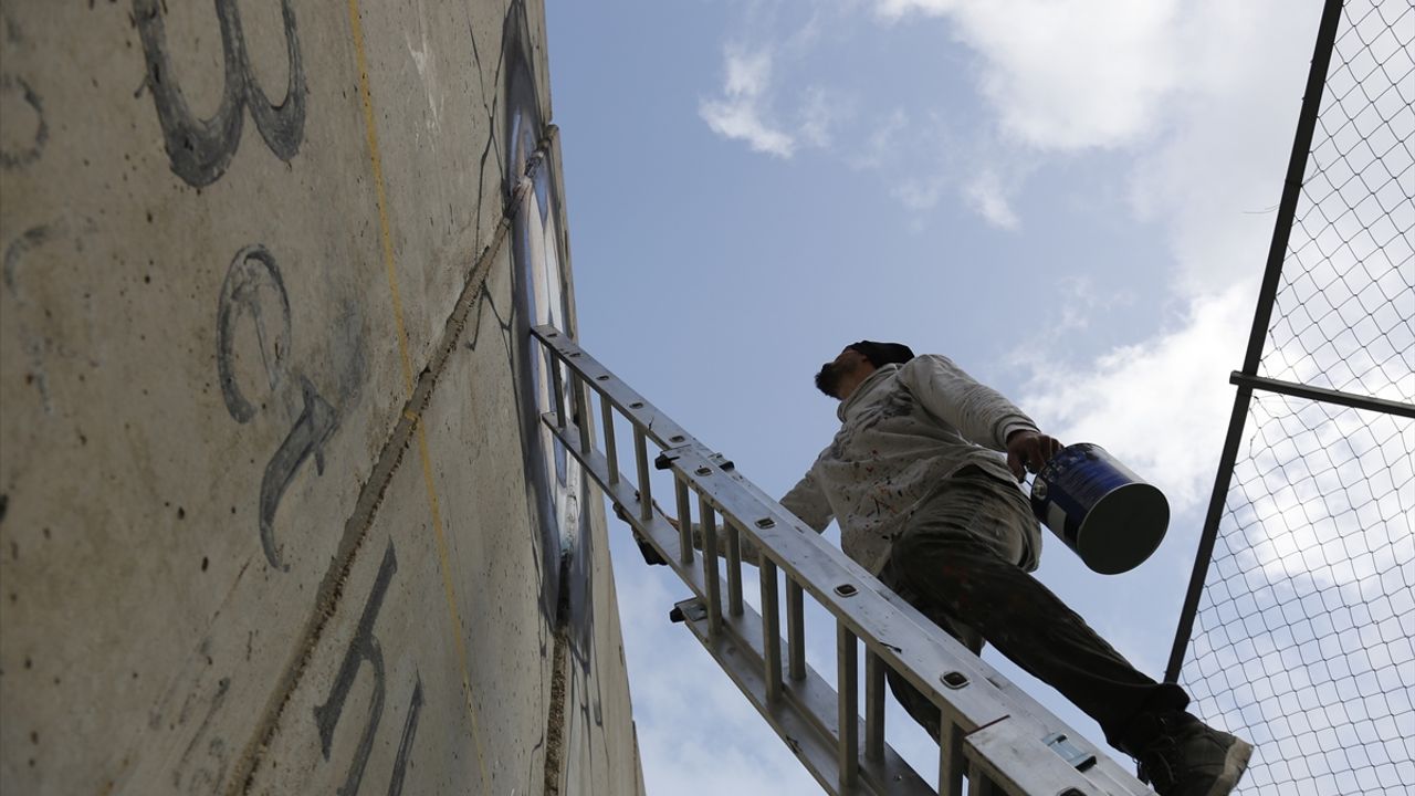BEYTÜLLAHİM (AA) - KAYS EBU SEMRA - İsrail'in işgal altındaki Batı Şeria'nın Beytüllahim kentinde bulunan Ayida Mülteci Kampı'ndaki stadyumu yıkma tehditlerine karşı Filistinli sanatçı Tarık Sebatin, kampın çocukları ve gençleri için hayati önem taşıyan bu spor alanına yönelik dayanışmasını duvar resmiyle ifade ediyor.