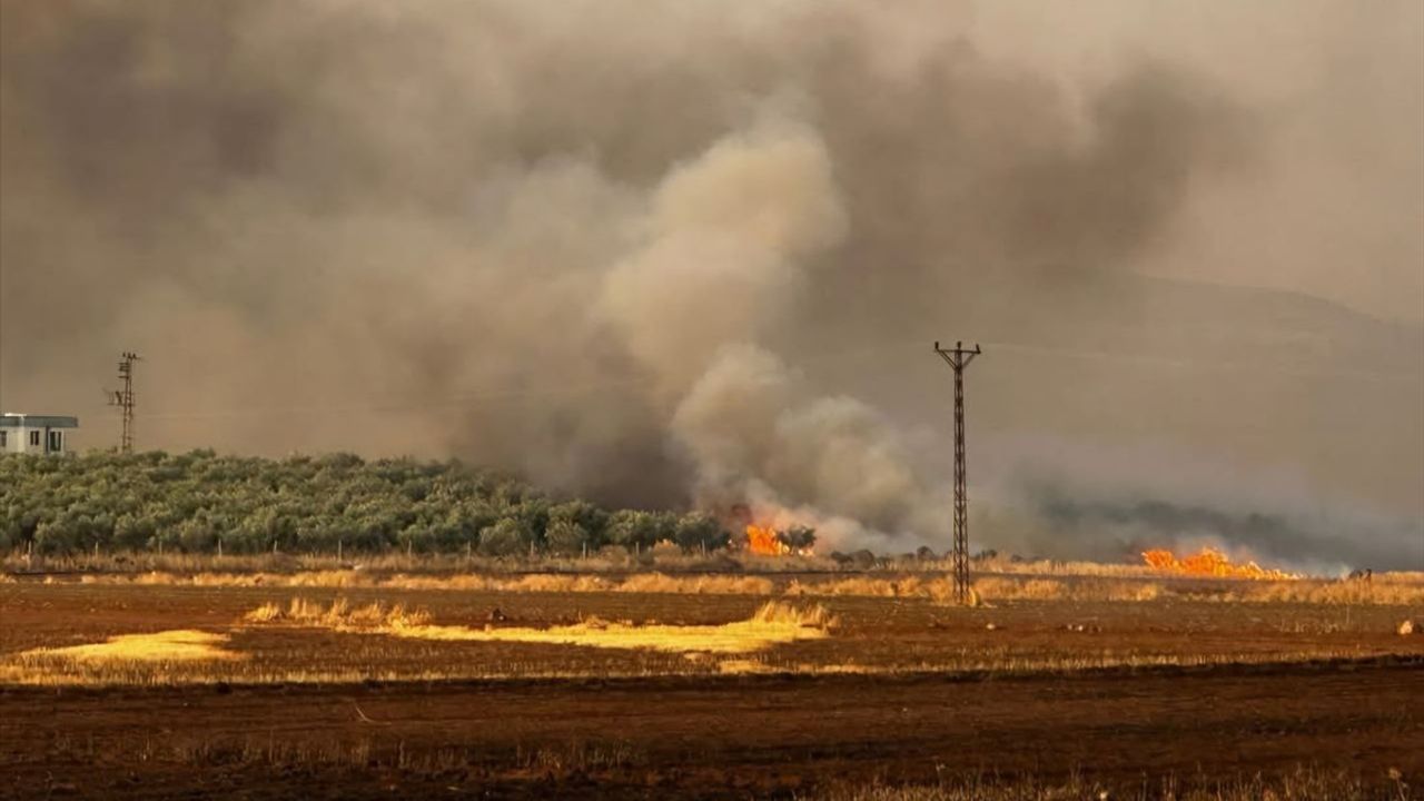 Vatandaşların, yangının diğer tarlalara sıçramaması için bazı alanları traktörlerle sürdüğü görüldü.