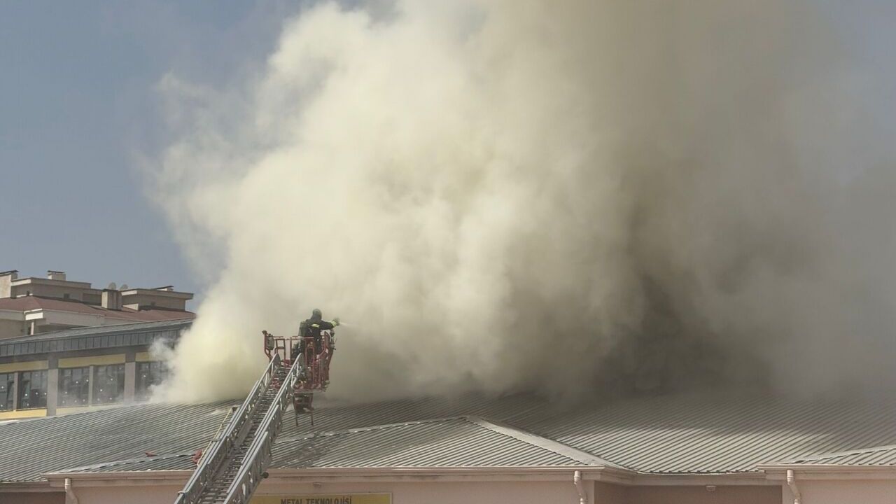 Karacaahmet Mahallesi'nde bulunan Şehit Serdal Şakir Mesleki ve Teknik Anadolu Lisesinin mobilya atölyesinde henüz belirlenemeyen nedenle yangın çıktı.