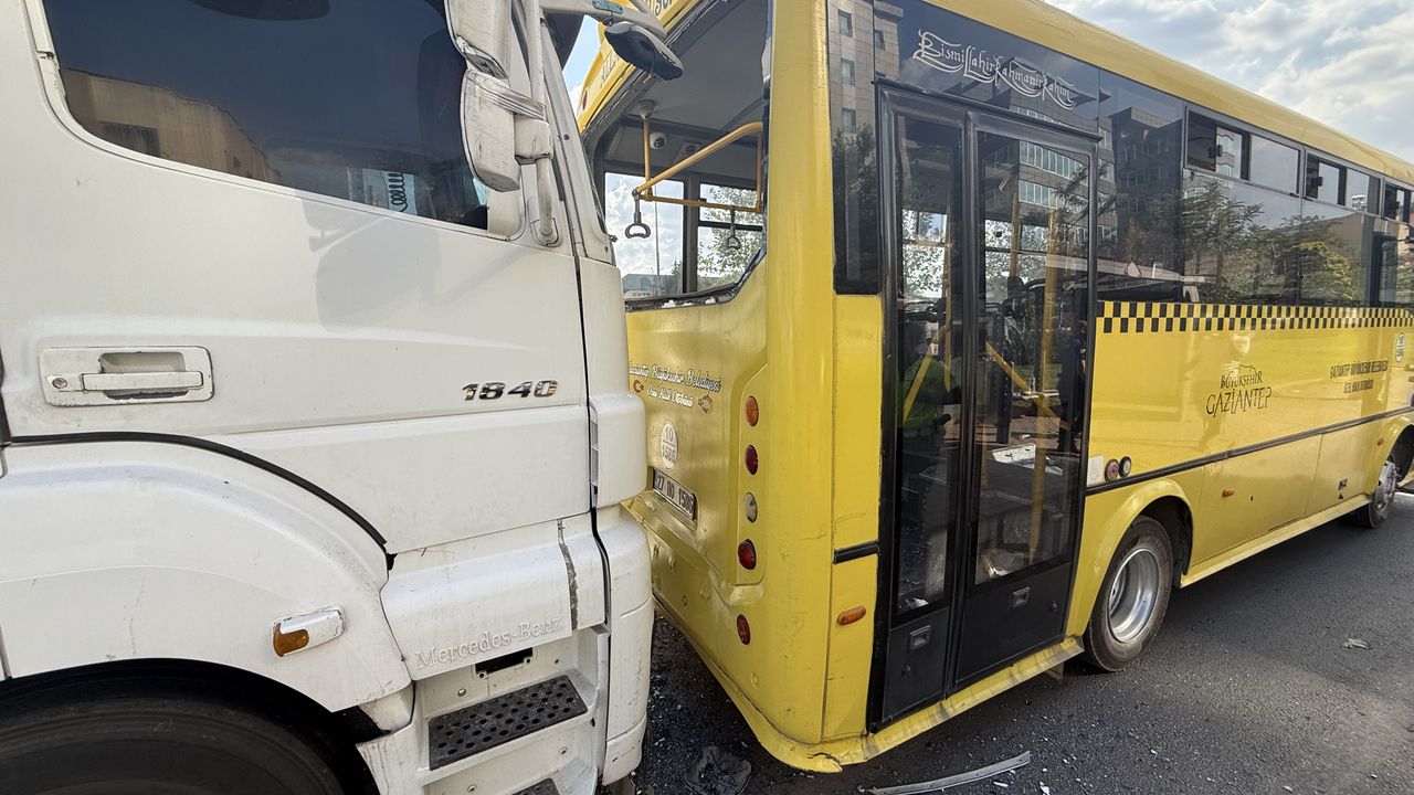 GAZİANTEP (AA) - Gaziantep'te tırın özel halk otobüsüne çarpması sonucu 2'si ağır 3 kişi yaralandı.