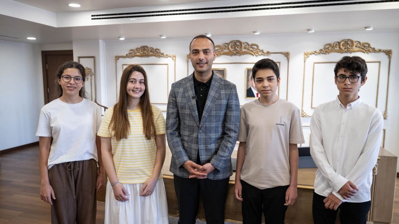 İSTANBUL (AA) - Gaziosmanpaşa Belediye Başkan Vekili Eray Karadeniz, 2025 Liselere Geçiş Sistemi (LGS) sınavında 500 tam puan alıp, Türkiye birincisi olan ve dereceye giren 4 öğrenciye hediye takdim etti.