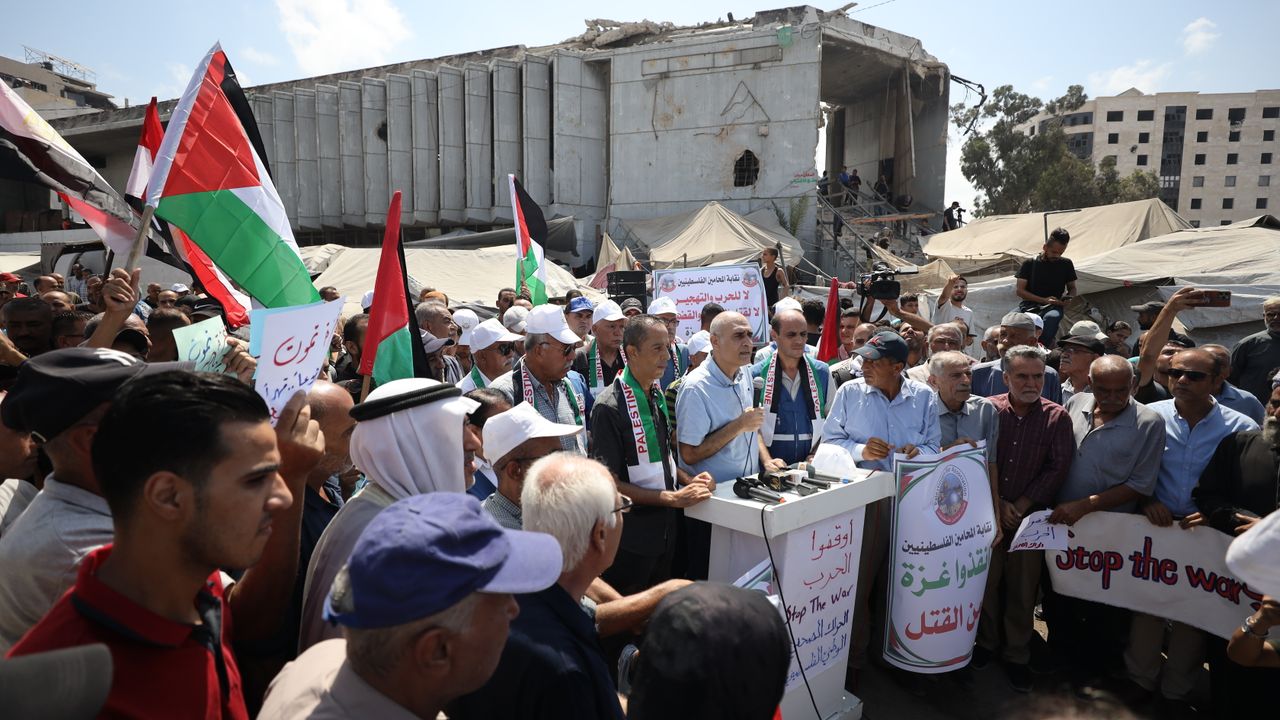 GAZZE (AA) - Gazze Şeridi'nin kuzeyinde onlarca Filistinli, savaşın ve soykırımın durdurulması talebiyle gösteri düzenledi.