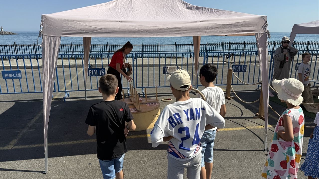 Sahil dolgu alanda konuşlandırılan tırda çocuklar, unutulmaya yüz tutmuş geleneksel oyunları öğrenip oynama fırsatı buluyor.