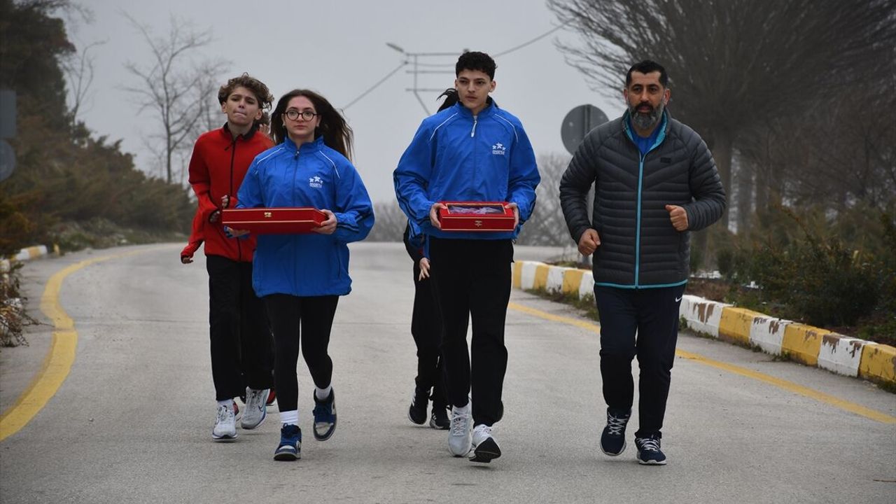 BİLECİK (AA) - Cumhurbaşkanı Recep Tayyip Erdoğan'a 18 Mart'ta sunulmak üzere Gelibolu Yarımadası'ndan alınan toprak, deniz suyu ve Türk bayrağı, Bursalı atletler tarafından Bilecikli sporculara teslim edildi.