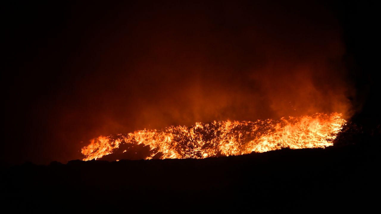 Yangının ardından çöp toplama alanında iş makineleri yardımıyla düzenleme çalışması yapıldı.