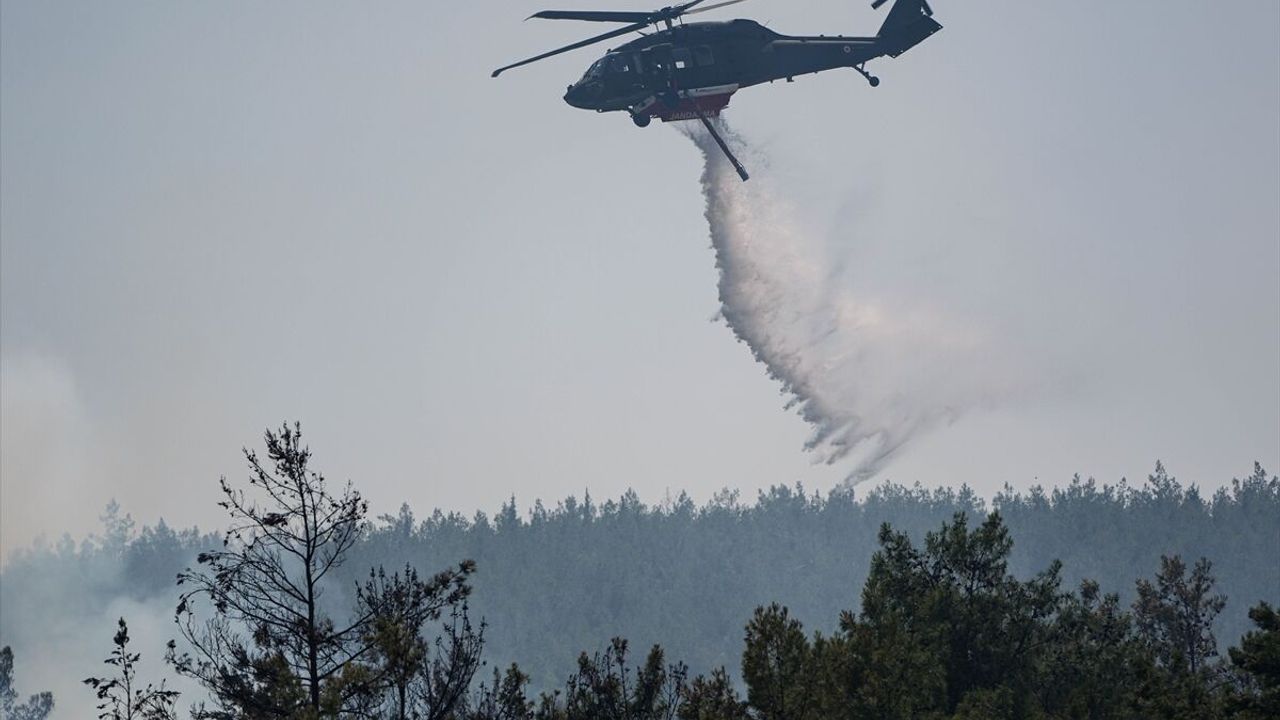 İhbar üzerine bölgeye, İzmir Orman Bölge Müdürlüğüne bağlı 4 uçak, 7 helikopter, 25 arazöz, 7 su ikmal aracı ve 4 dozer sevk edildi.
