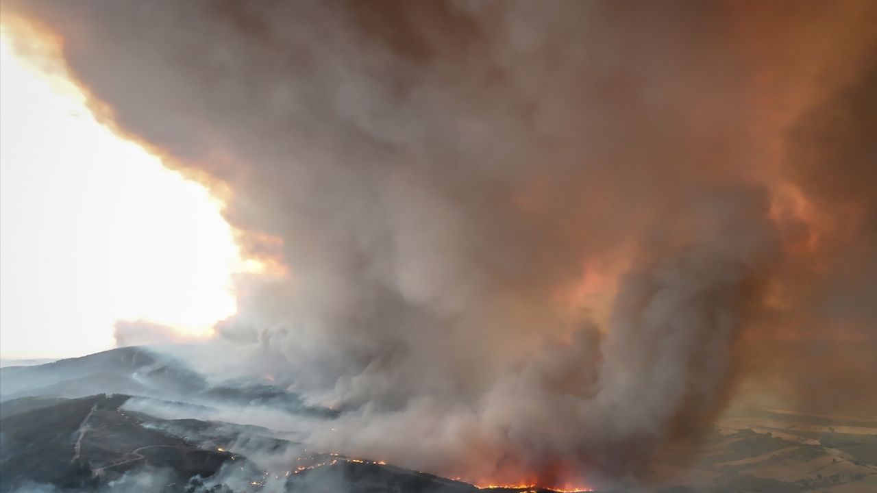 Orman yangınına 12 uçak, 18 helikopter, 155 arazöz, 8 iş makinesi, 899 personelle müdahale ediliyor.