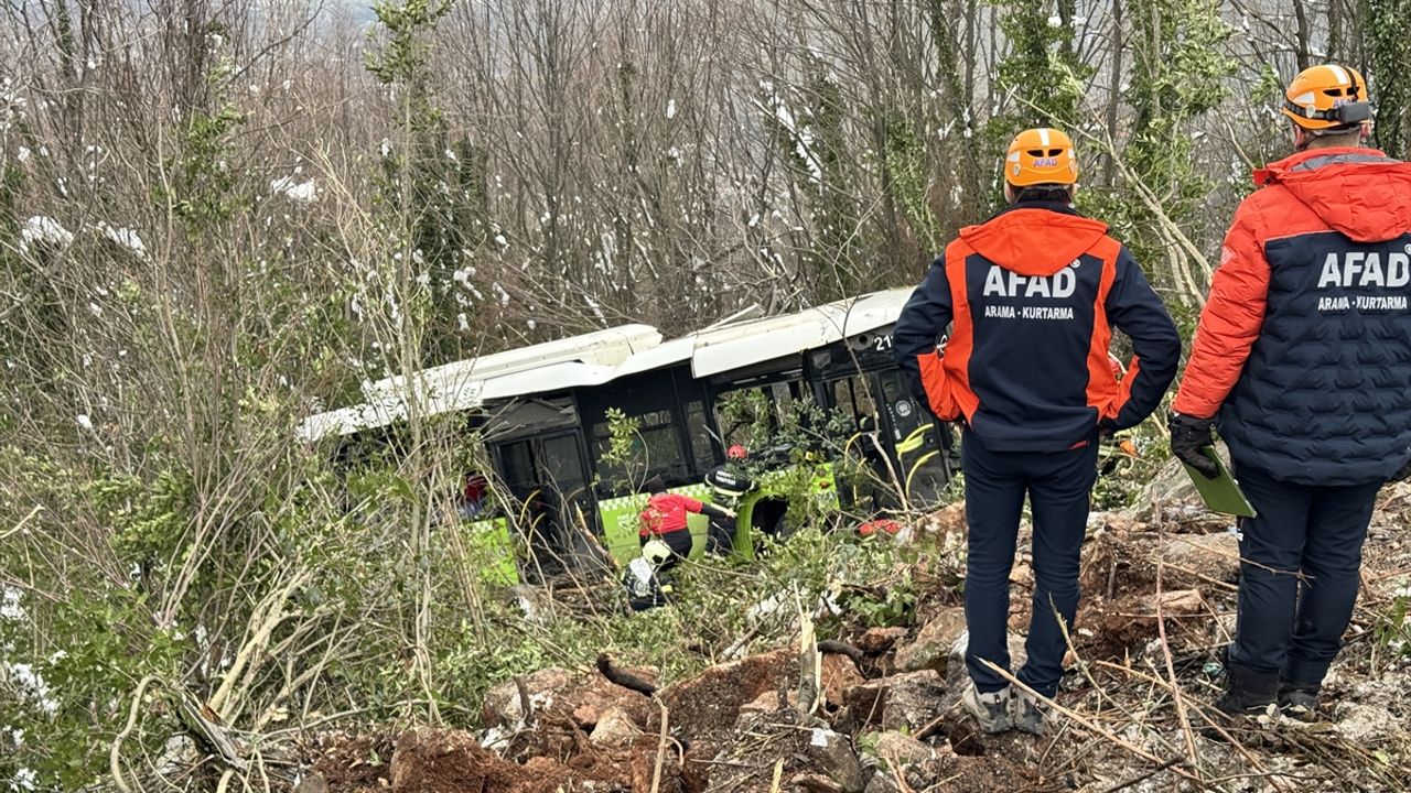 Kartepe Teleferiği'nin olumsuz hava koşulları nedeniyle hizmet verememesi üzerine Kuzuyayla Tabiat Parkı'na düzenlenen seferden dönen belediye otobüsü, Sisli Vadi mevkisinde şarampole devrildi.