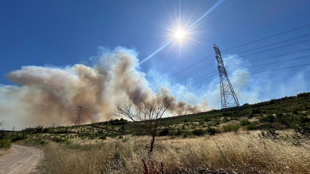 Rüzgarın etkisiyle geniş alana yayılan yangına Orman Bölge Müdürlüğü, AFAD ve itfaiye ekiplerince müdahale ediliyor.