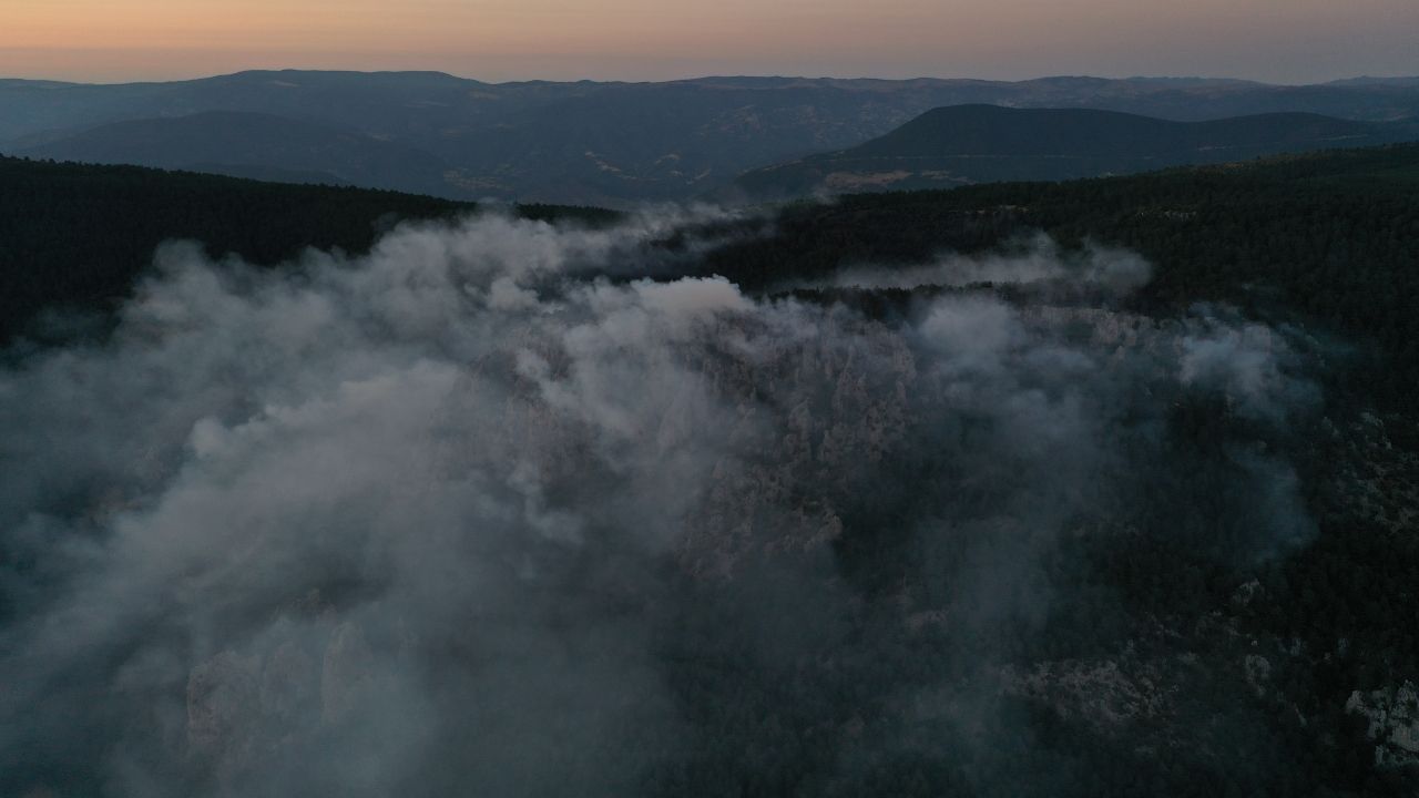 Dron ile görüntülenen yangının 22 hektar alanda etkili olduğu öğrenildi.