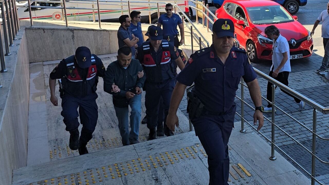 Gözaltına alınan şüpheli Erdeniz K. jandarmadaki işlemlerinin ardından geniş güvenlik önlemi altında adliyeye sevk edildi.
