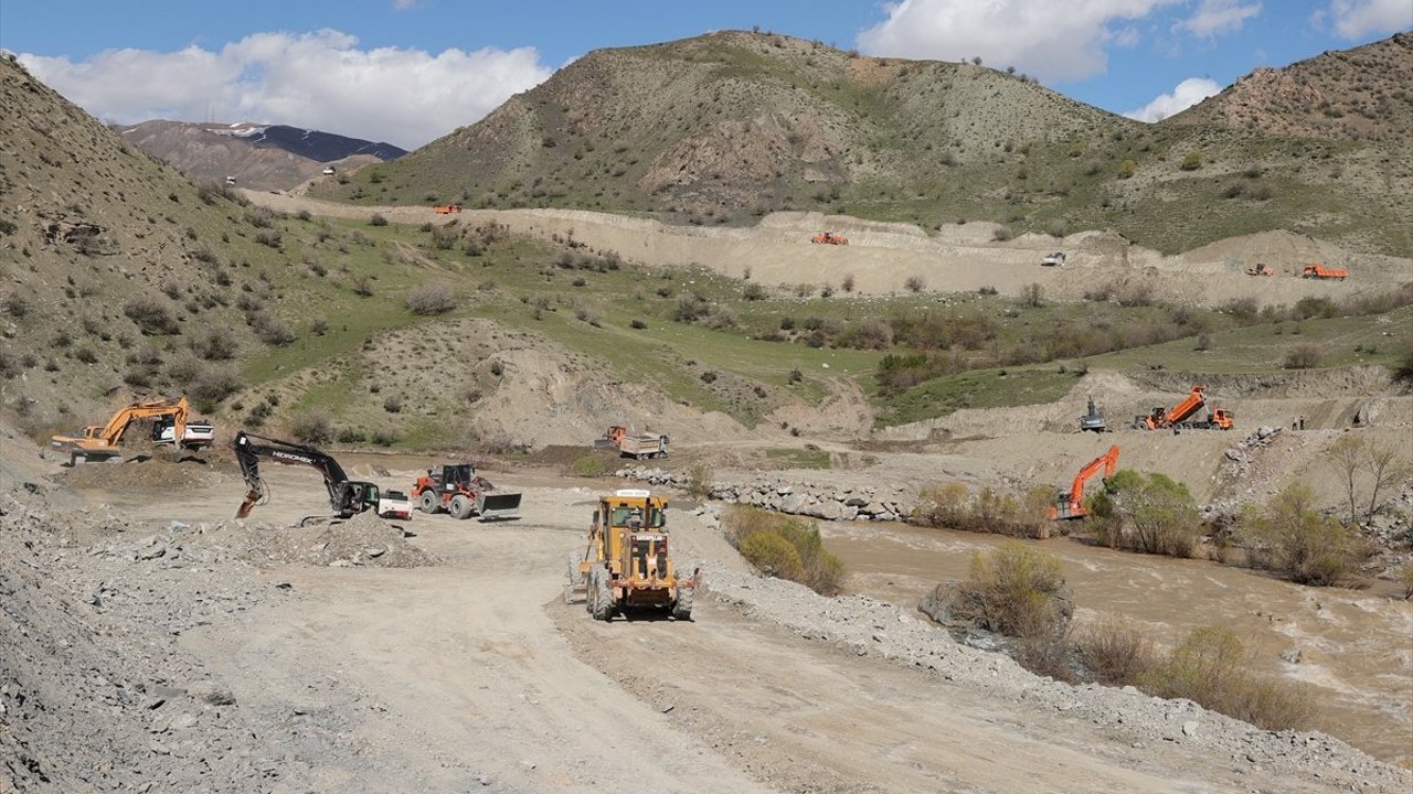 HAKKARİ (AA) - Hakkari'de meydana gelen heyelan nedeniyle ulaşıma kapanan Hakkari-Van kara yolunun Tatlı köyü mevkisindeki alternatif güzergahta yol yapım çalışmaları devam ediyor.