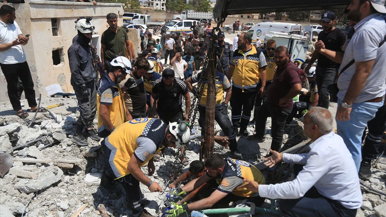 Devrik Beşşar Esed rejimine bağlı güçlerin önceki yıllarda gerçekleştirdiği hava saldırılarında ağır hasar gören binaya, rejimin düşmesinin ardından bölgeye geri dönen bir aile yerleşmişti.